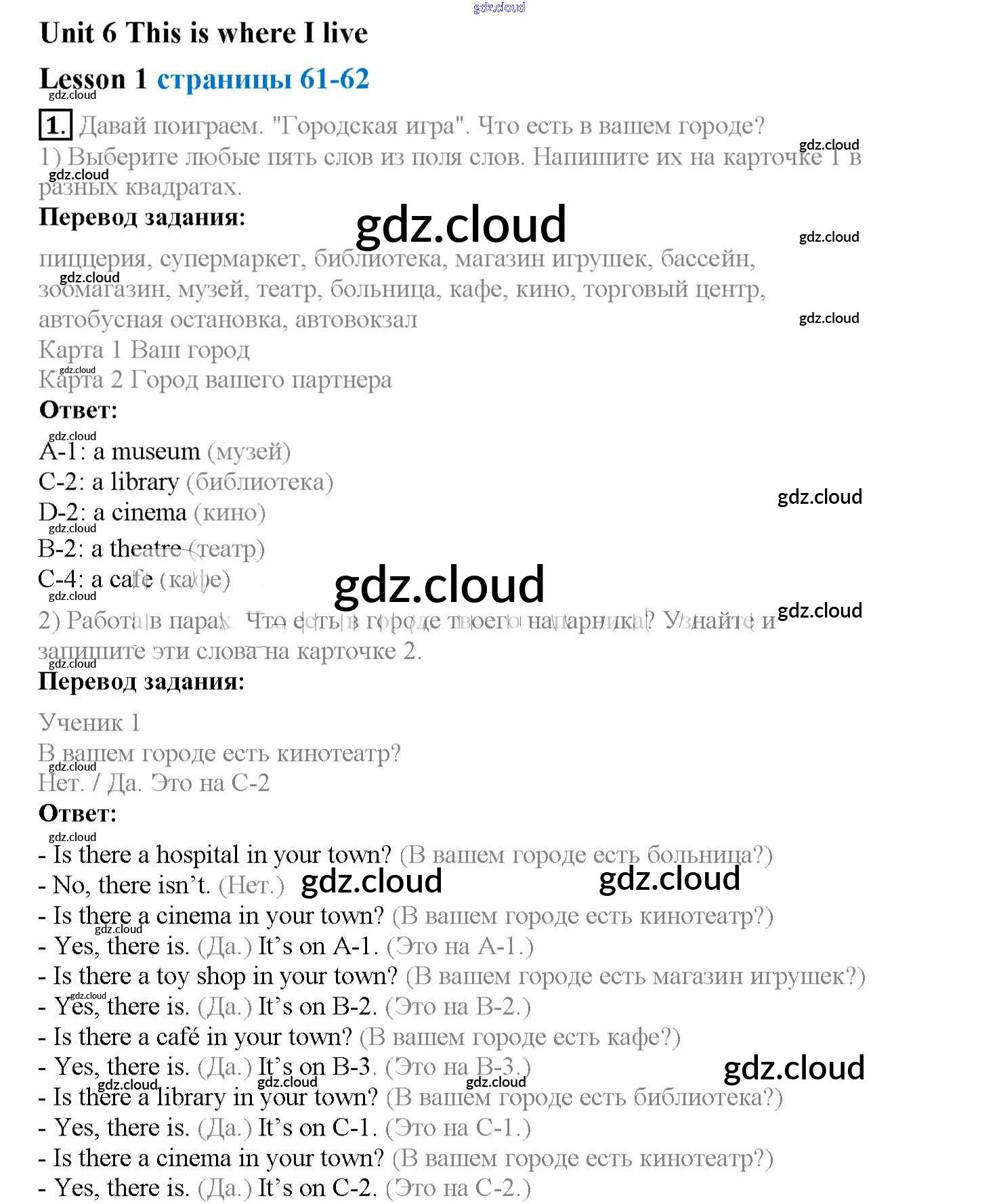 Lesson 1 Ответы к Unit 6 по Английскому языку 4 класс Рабочая тетрадь Кузовлев    Просвещение