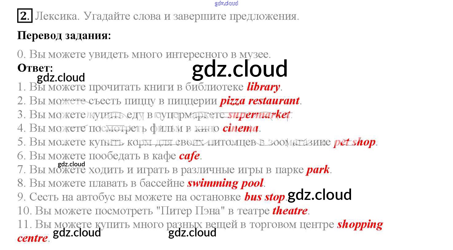 Ответ на задание 2 Рабочая тетрадь Английский язык  за 4 (четвертый) класс Кузовлев, Перегудова, Стрельникова   2013