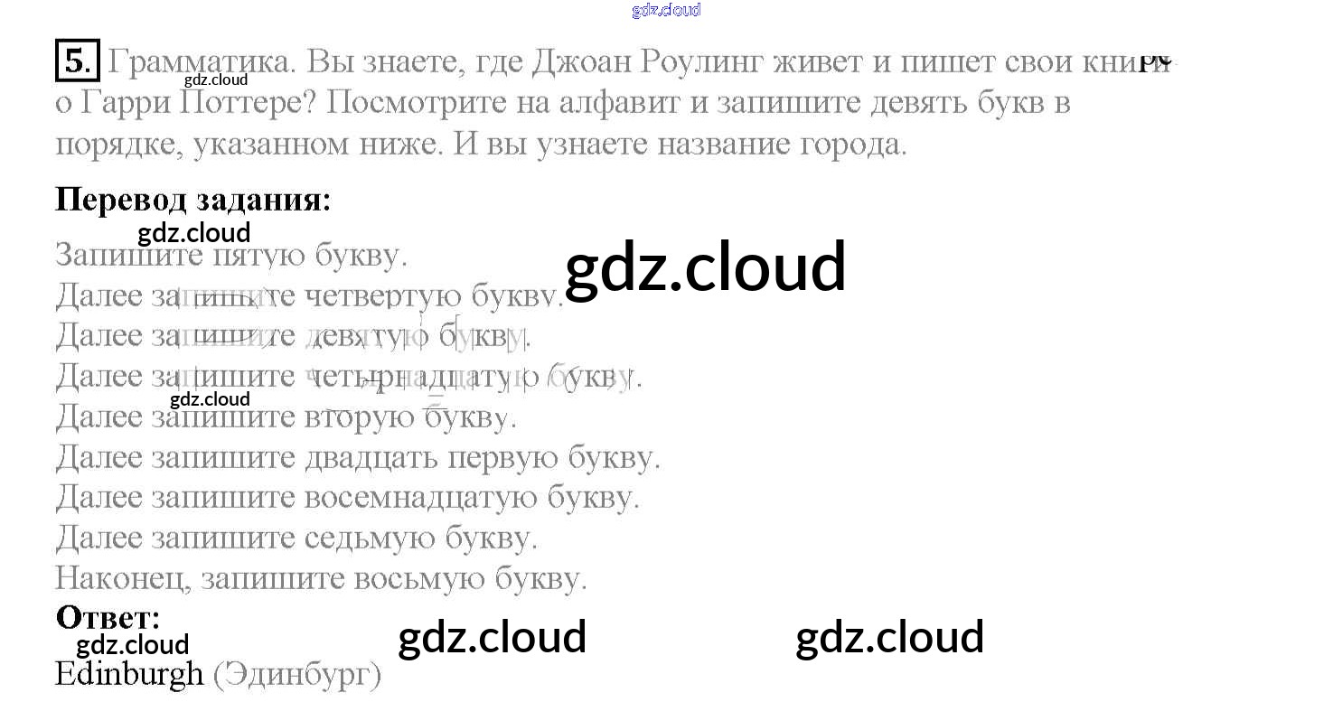 Ответ на задание 5 Рабочая тетрадь Английский язык  за 4 (четвертый) класс Кузовлев, Перегудова, Стрельникова   2013
