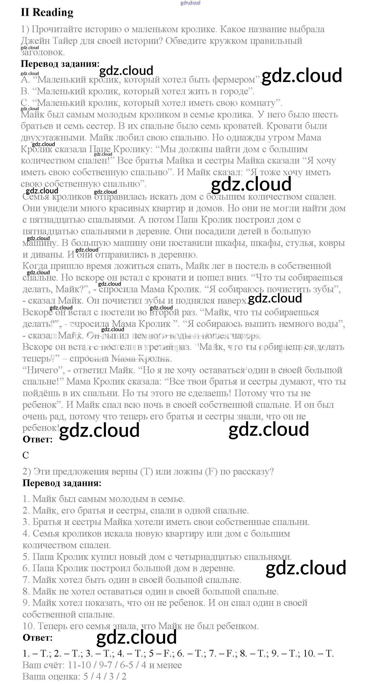 Ответ на задание Reading Рабочая тетрадь Английский язык  за 4 (четвертый) класс Кузовлев, Перегудова, Стрельникова   2013