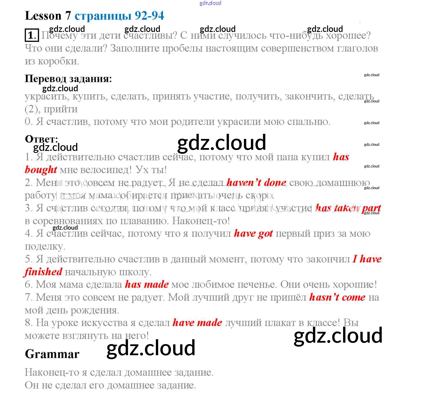 Lesson 7 Ответы к Unit 8 по Английскому языку 4 класс Рабочая тетрадь Кузовлев    Просвещение