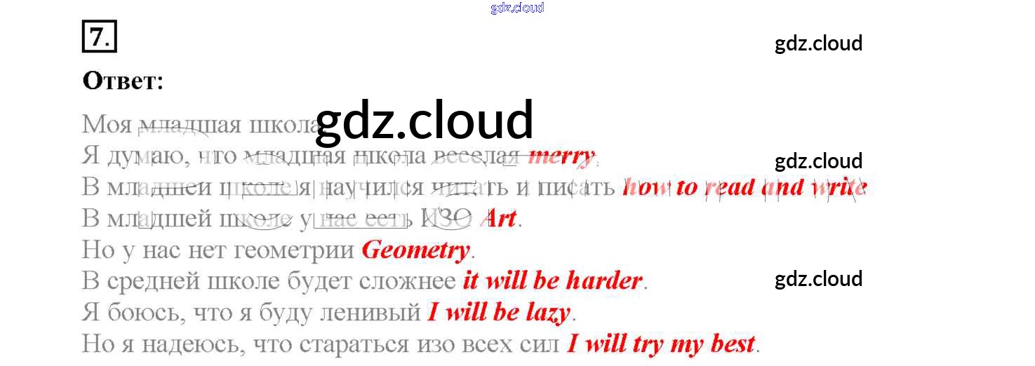 Ответ на задание 7 Рабочая тетрадь Английский язык  за 4 (четвертый) класс Кузовлев, Перегудова, Стрельникова   2013
