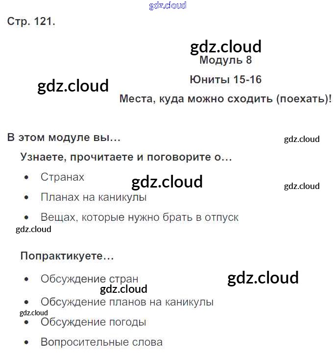 Ответ на задание страница 121 Учебник Английский язык за 4 (четвертый) класс Быкова, Дули, Поспелова, Эванс Spotlight 2015