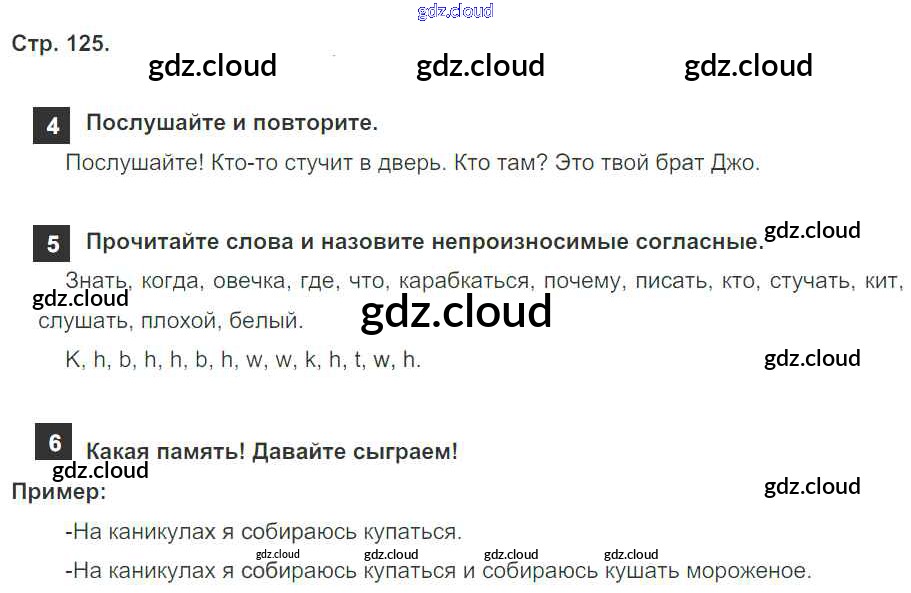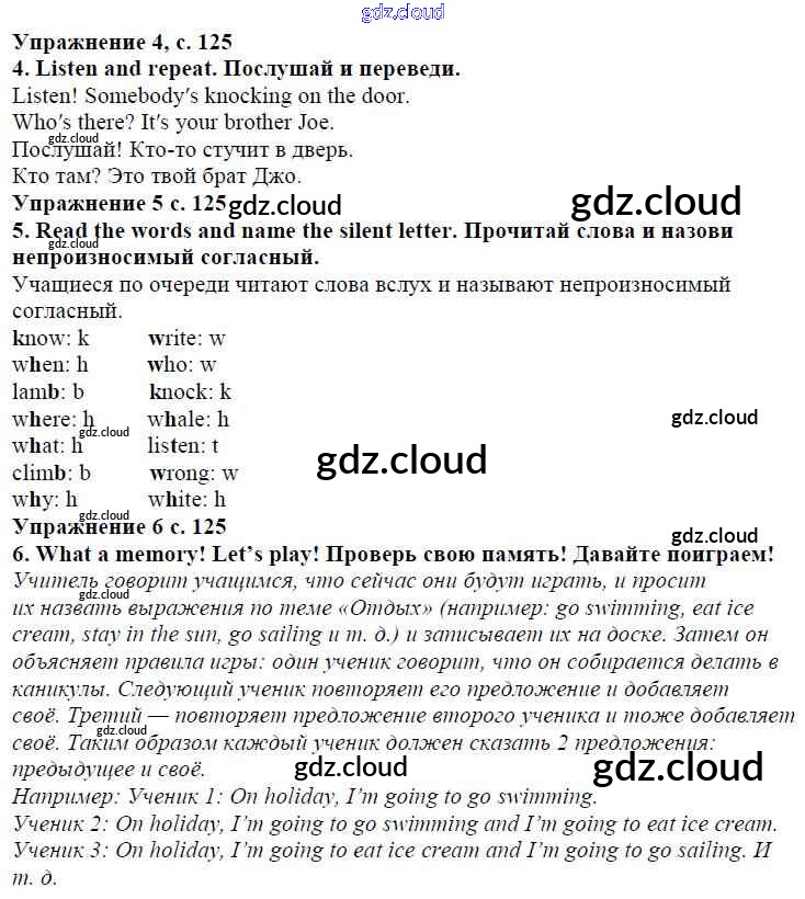 Ответ на задание страница 125 Учебник Английский язык за 4 (четвертый) класс Быкова, Дули, Поспелова, Эванс Spotlight 2015