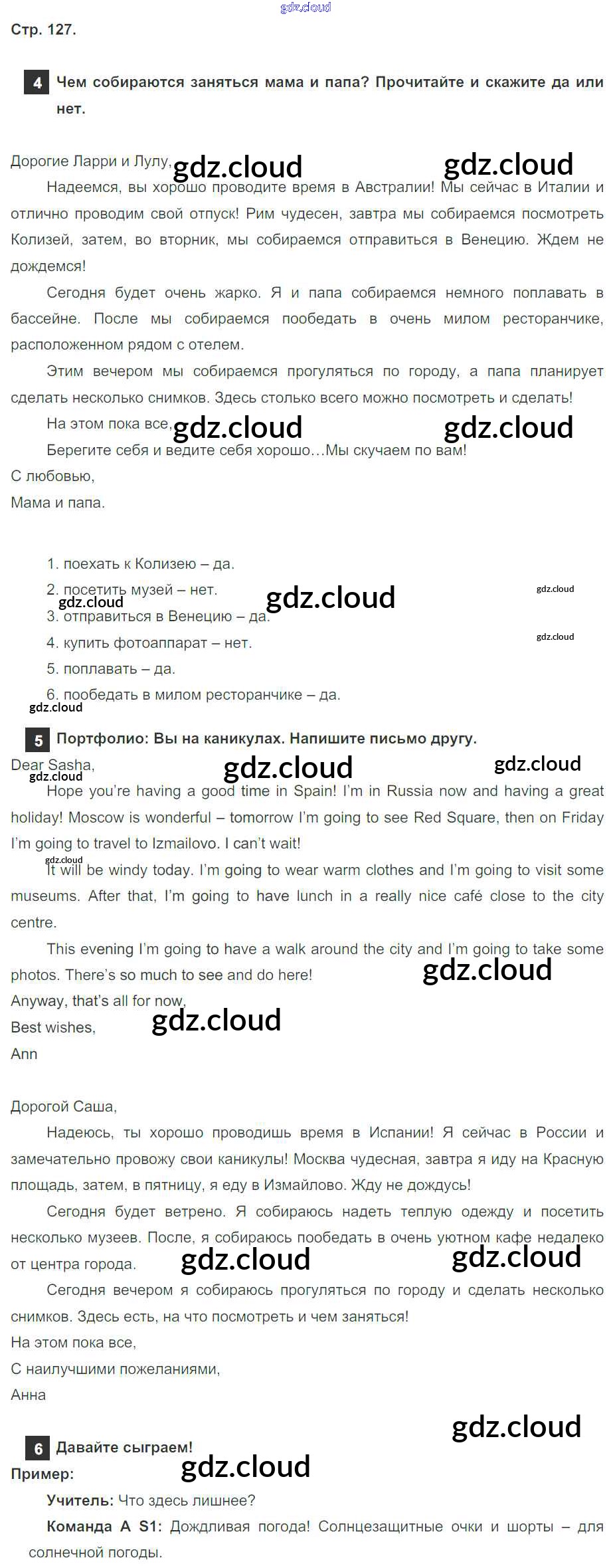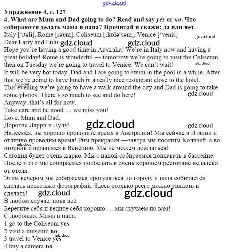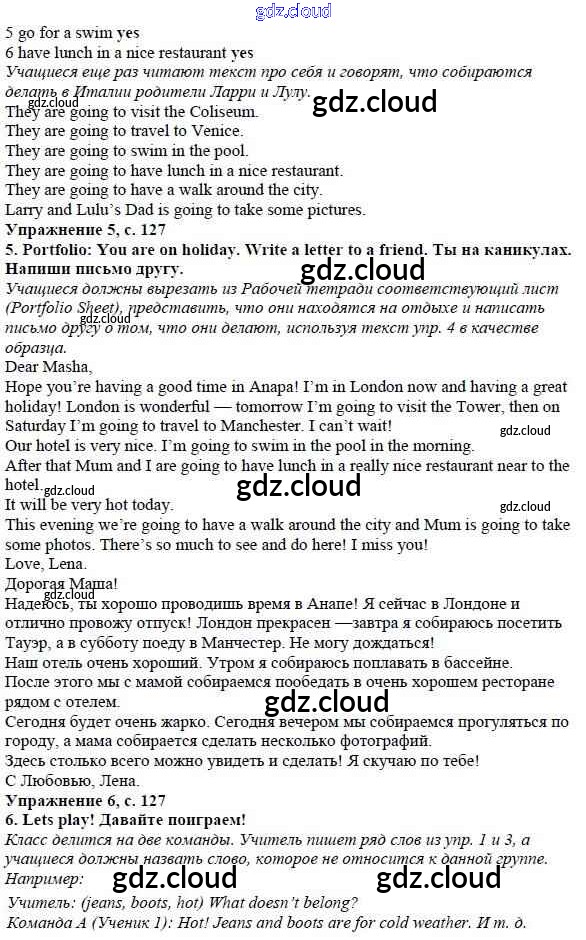 Ответ на задание страница 127 Учебник Английский язык за 4 (четвертый) класс Быкова, Дули, Поспелова, Эванс Spotlight 2015