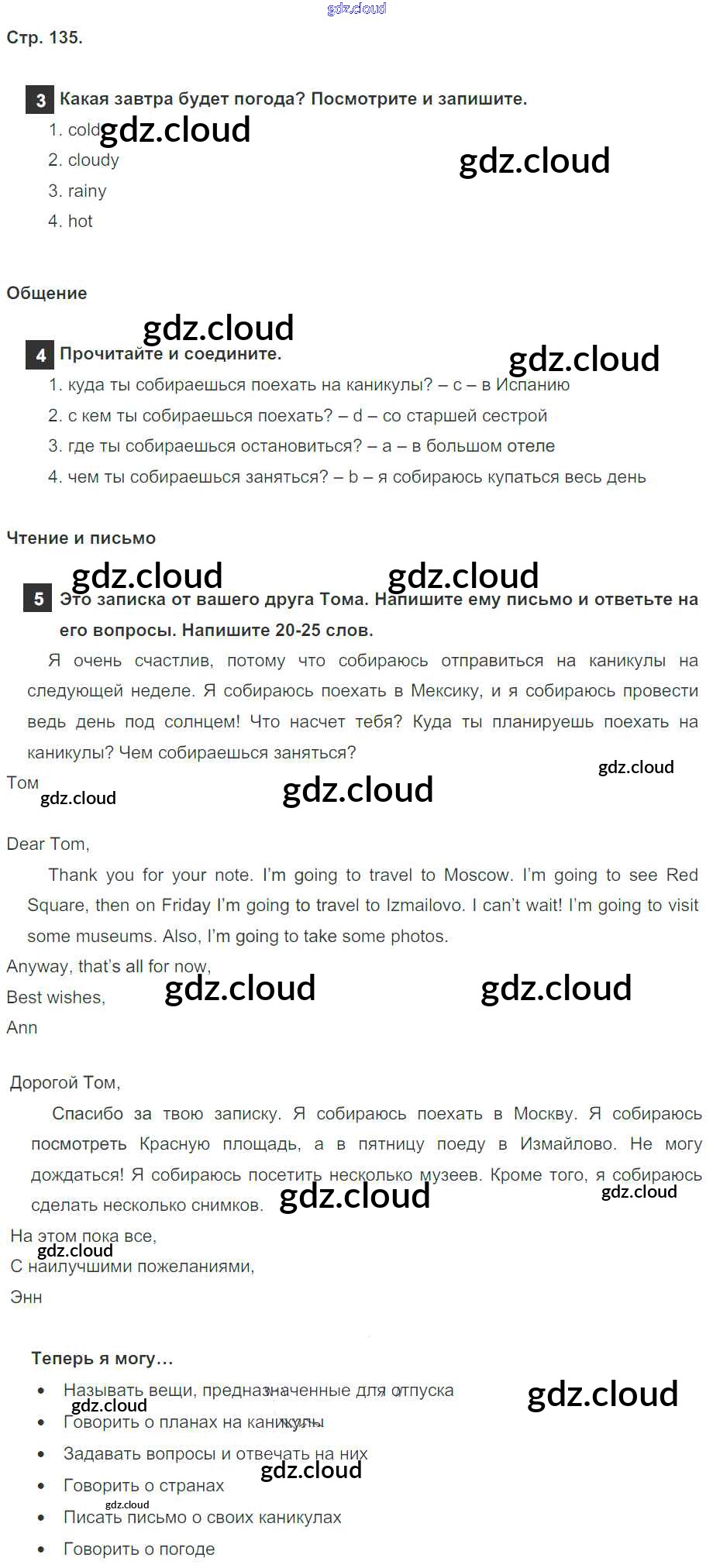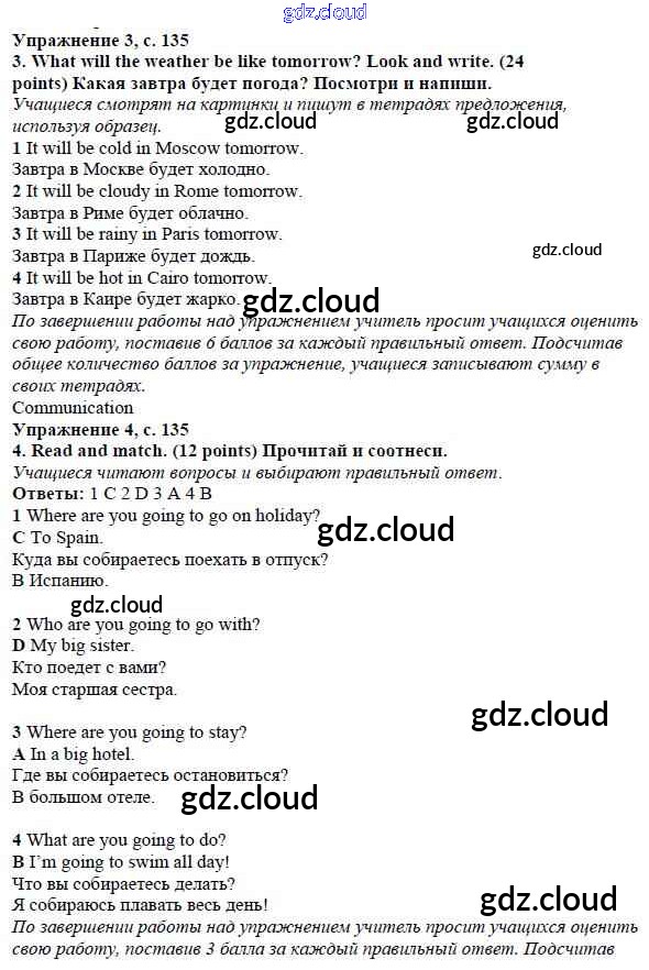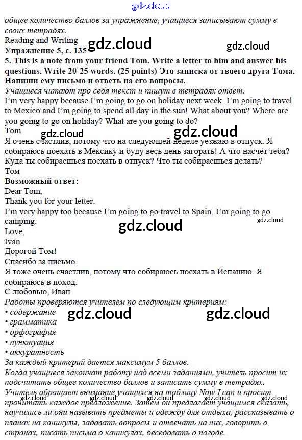 Ответ на задание страница 135 Учебник Английский язык за 4 (четвертый) класс Быкова, Дули, Поспелова, Эванс Spotlight 2015