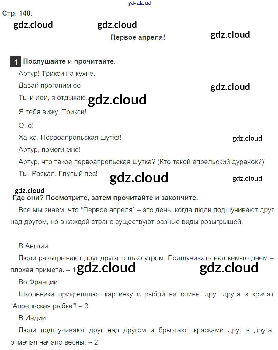 Ответ на задание страница 140 Учебник Английский язык за 4 (четвертый) класс Быкова, Дули, Поспелова, Эванс Spotlight 2015