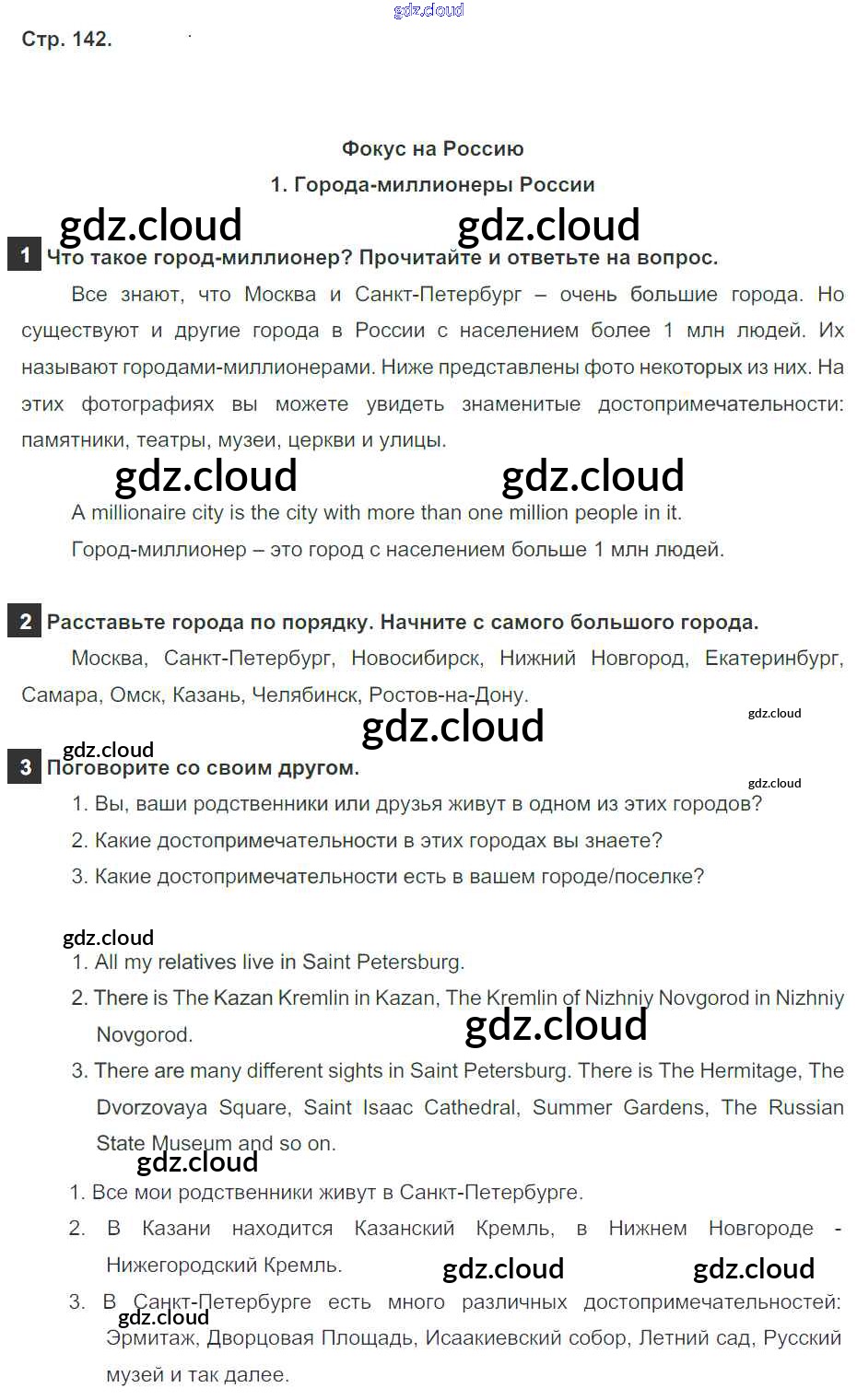 Ответ на задание страница 142 Учебник Английский язык за 4 (четвертый) класс Быкова, Дули, Поспелова, Эванс Spotlight 2015