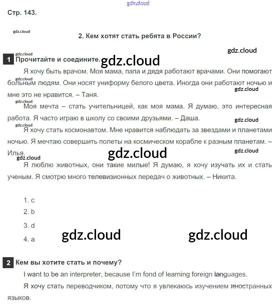 Ответ на задание страница 143 Учебник Английский язык за 4 (четвертый) класс Быкова, Дули, Поспелова, Эванс Spotlight 2015