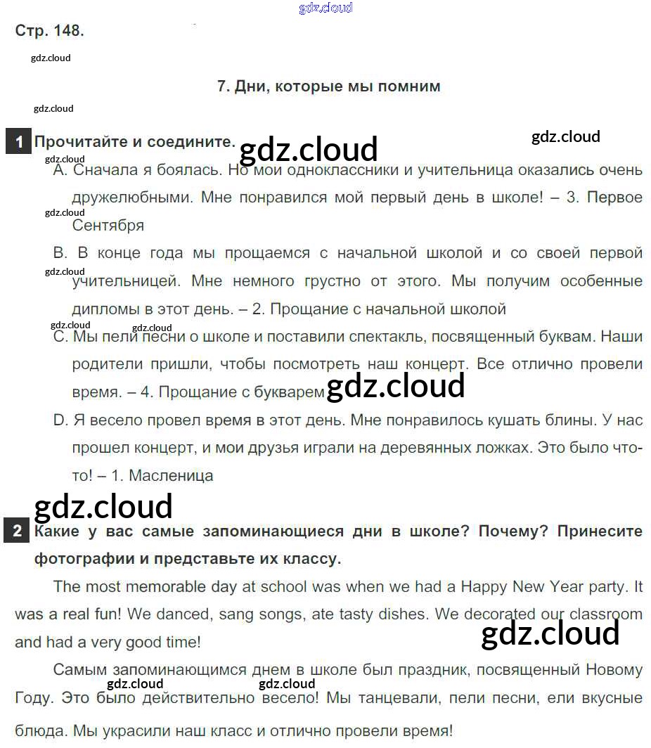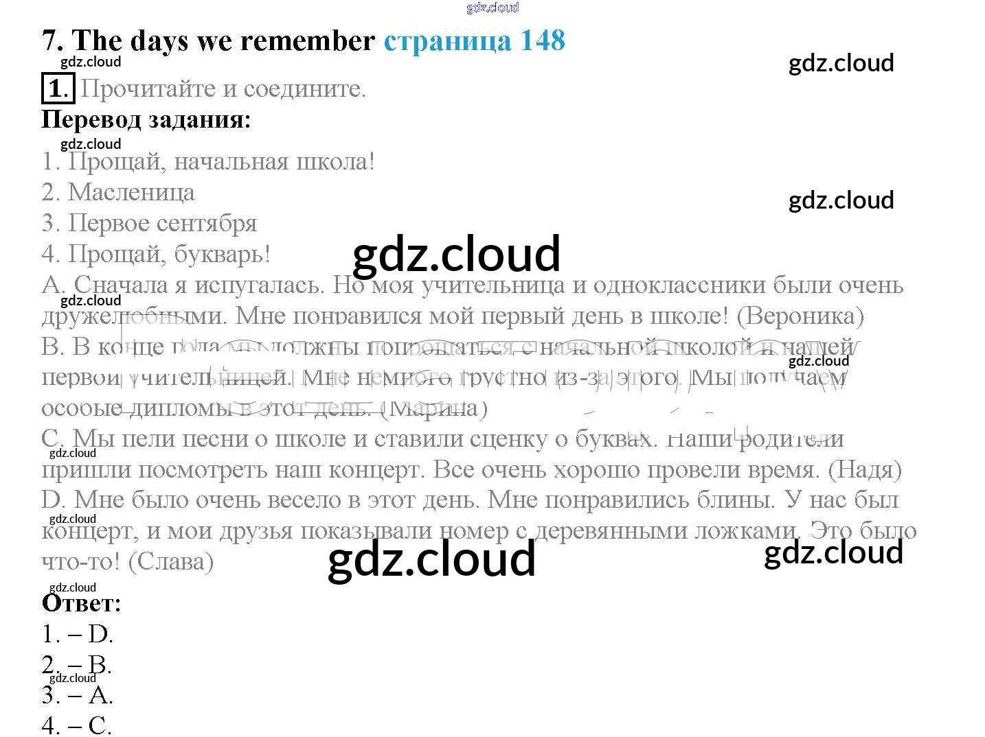 Ответ на задание страница 148 Учебник Английский язык за 4 (четвертый) класс Быкова, Дули, Поспелова, Эванс Spotlight 2015