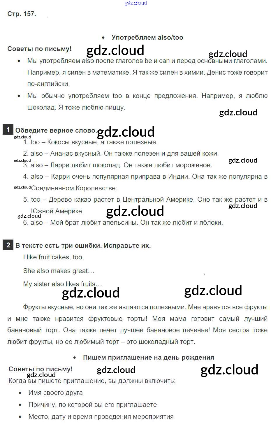 Ответ на задание страница 157 Учебник Английский язык за 4 (четвертый) класс Быкова, Дули, Поспелова, Эванс Spotlight 2015