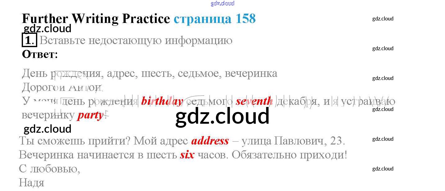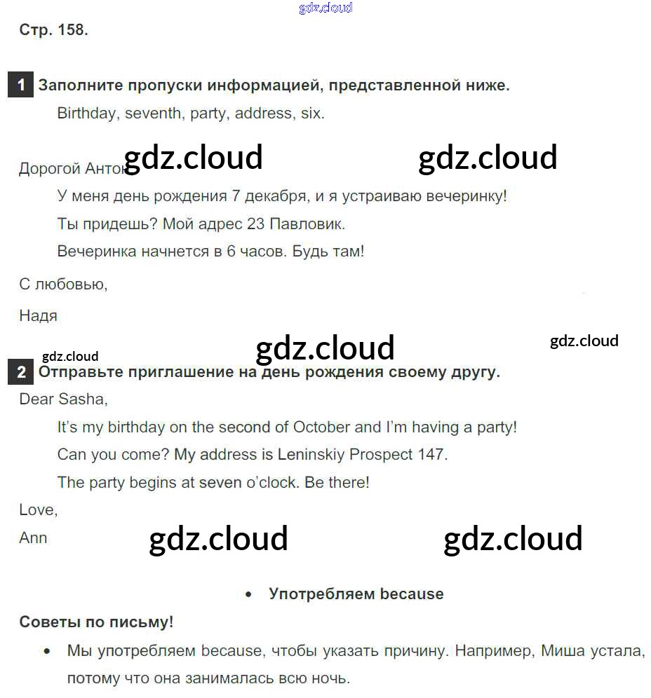Ответ на задание страница 158 Учебник Английский язык за 4 (четвертый) класс Быкова, Дули, Поспелова, Эванс Spotlight 2015