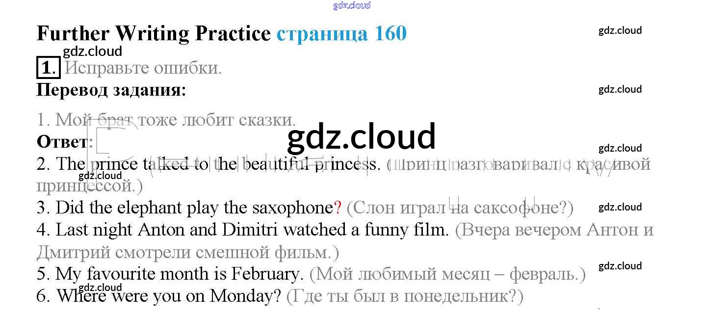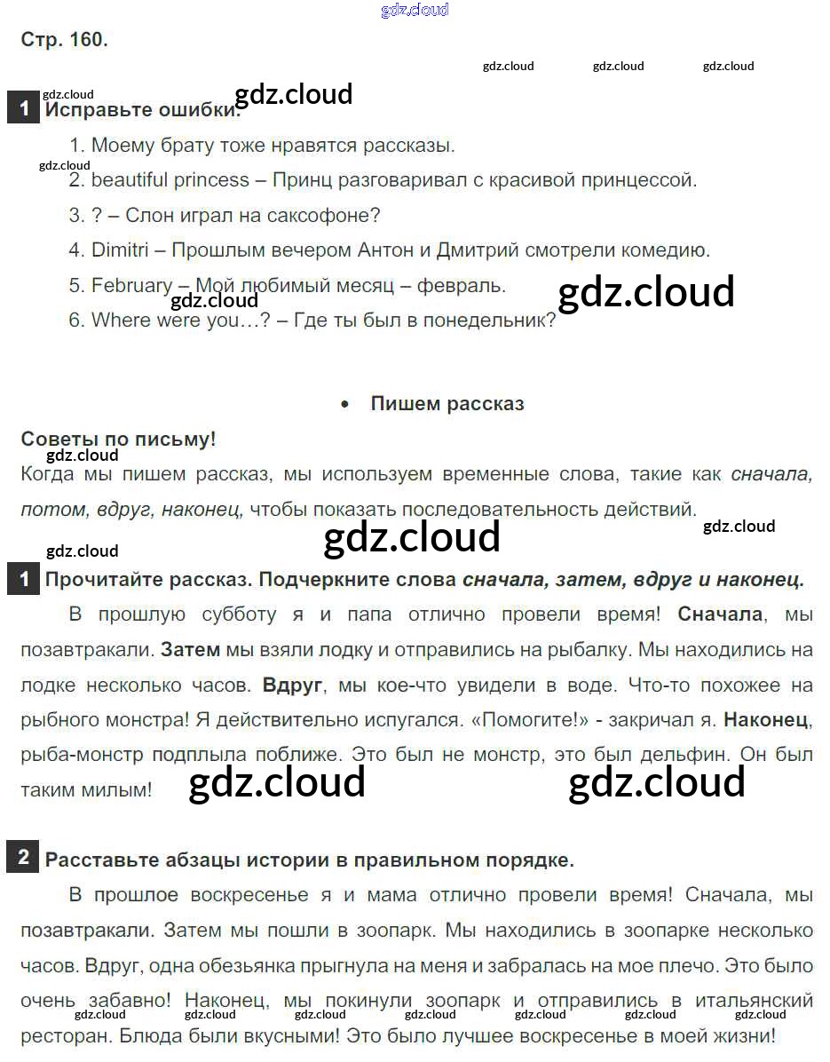 Ответ на задание страница 160 Учебник Английский язык за 4 (четвертый) класс Быкова, Дули, Поспелова, Эванс Spotlight 2015