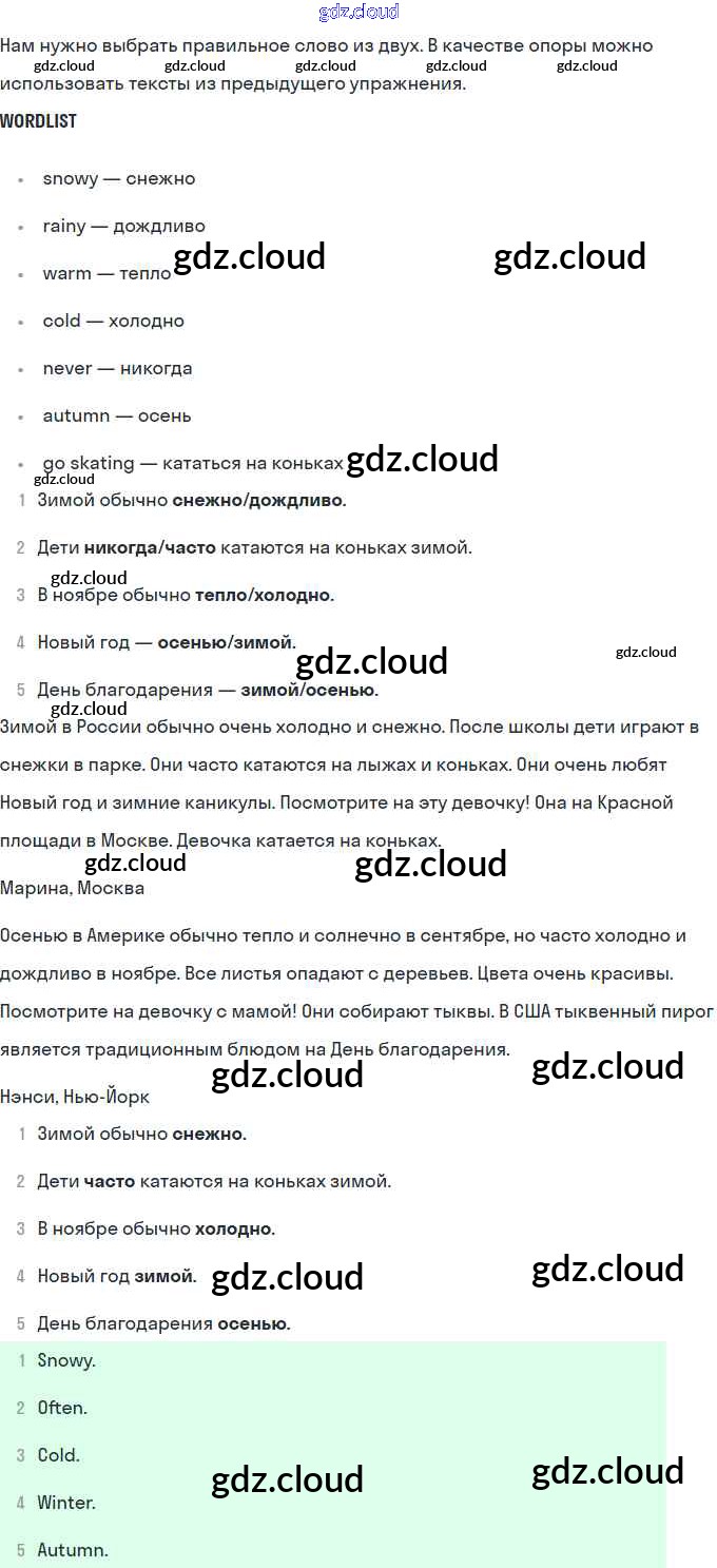 Ответы. Раздел 7. Погода по Английскому языку 4 класс Учебник Комарова Brilliant Русское слово