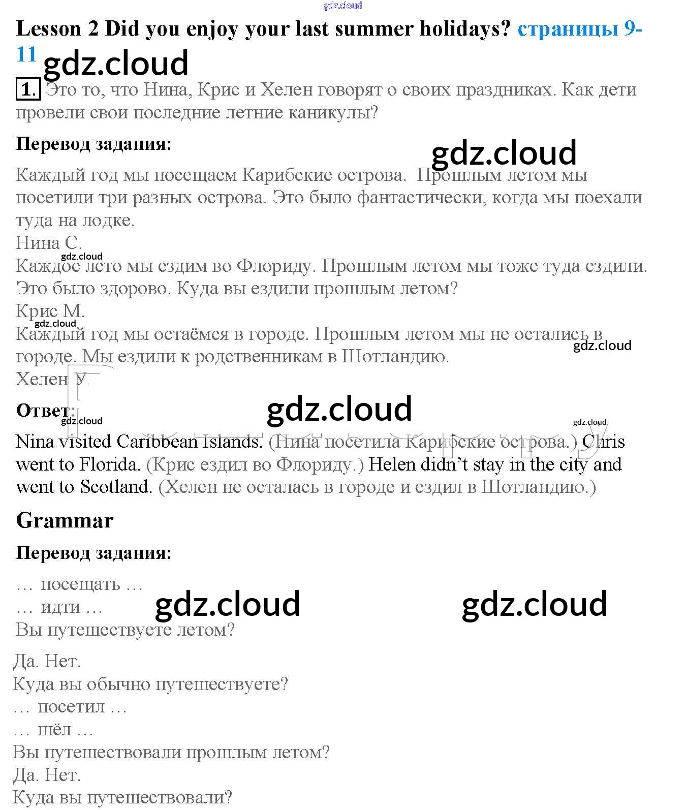 Lesson 2. Did you enjoy your last summer holidays? Ответы к Unit 1. My summer favourites по Английскому языку 4 класс Учебник Кузовлев Часть 1, 2 Просвещение