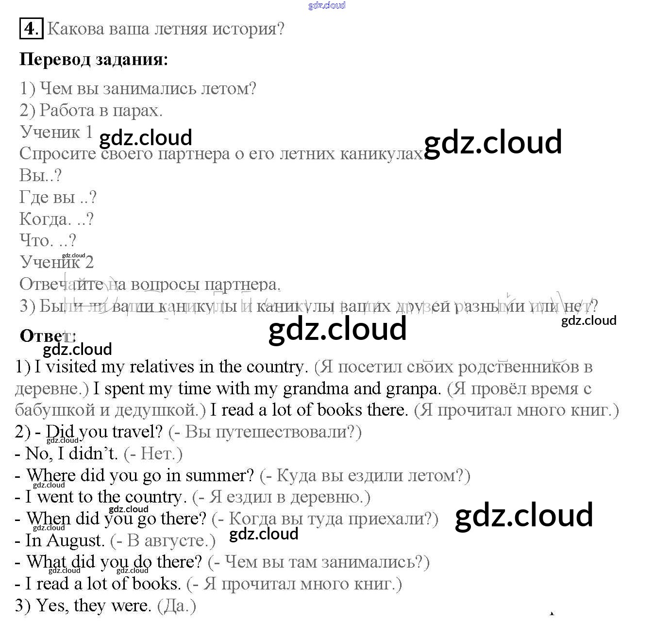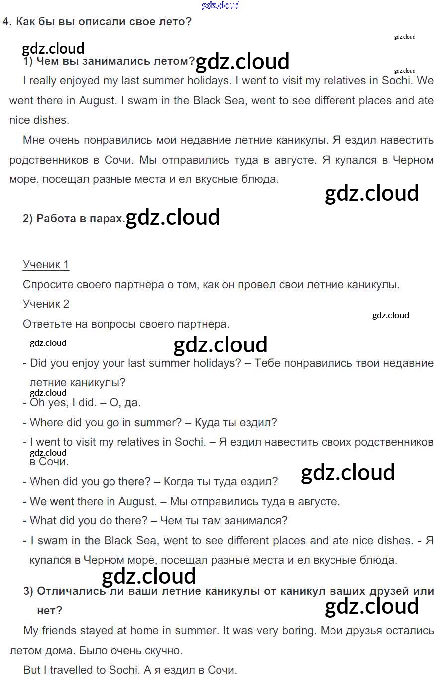 Lesson 2. Did you enjoy your last summer holidays? Ответы к Unit 1. My summer favourites по Английскому языку 4 класс Учебник Кузовлев Часть 1, 2 Просвещение