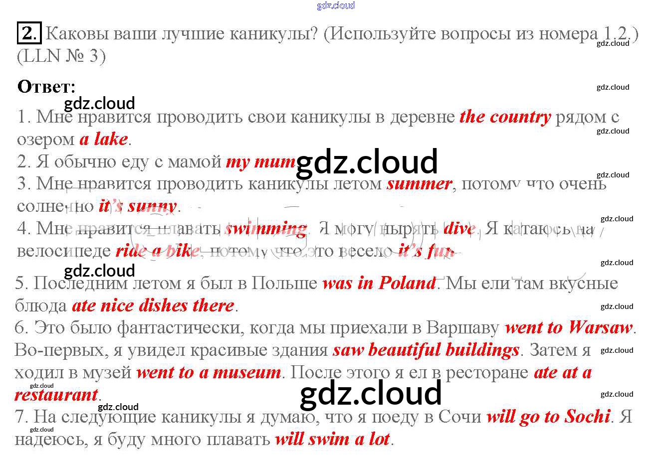 Lesson 5. I will never forget these holidays Ответы к Unit 1. My summer favourites по Английскому языку 4 класс Учебник Кузовлев Часть 1, 2 Просвещение