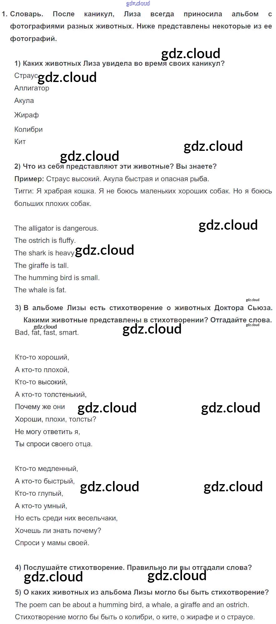 Lesson 1. Do you like riddles about animals? Ответы к Unit 2. The animals I like по Английскому языку 4 класс Учебник Кузовлев Часть 1, 2 Просвещение