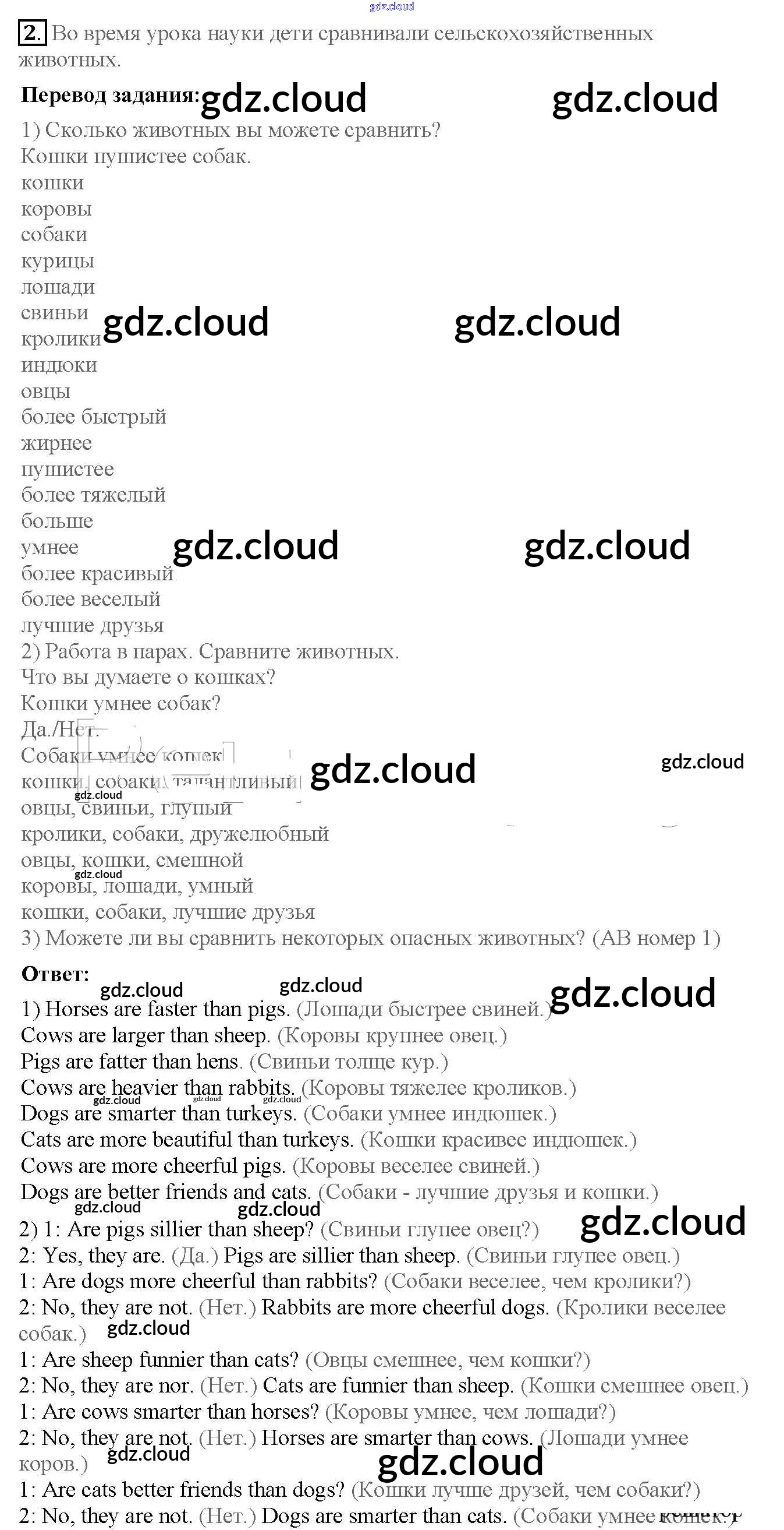Lesson 2. Are cats smarter than dogs? Ответы к Unit 2. The animals I like по Английскому языку 4 класс Учебник Кузовлев   Часть 1, 2 Просвещение