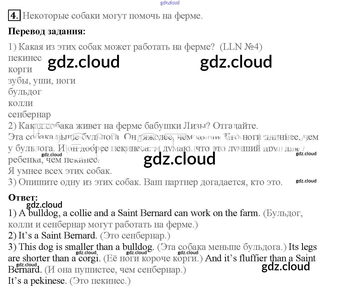 Lesson 2. Are cats smarter than dogs? Ответы к Unit 2. The animals I like по Английскому языку 4 класс Учебник Кузовлев Часть 1, 2 Просвещение