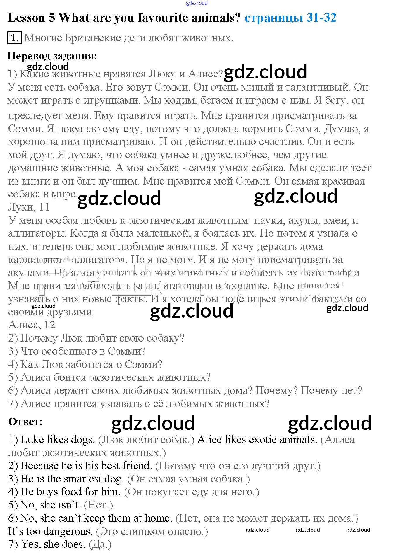 Lesson 5. What are your favourite animals? Ответы к Unit 2. The animals I like по Английскому языку 4 класс Учебник Кузовлев Часть 1, 2 Просвещение