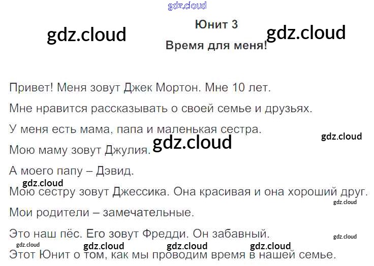 Ответы к Unit 3. It's time for me! по Английскому языку 4 класс Учебник Кузовлев Часть 1, 2 Просвещение