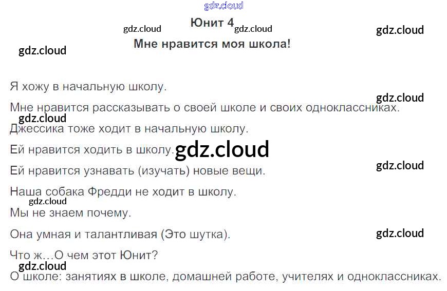 Ответы к Unit 4. I like my school! по Английскому языку 4 класс Учебник Кузовлев Часть 1, 2 Просвещение