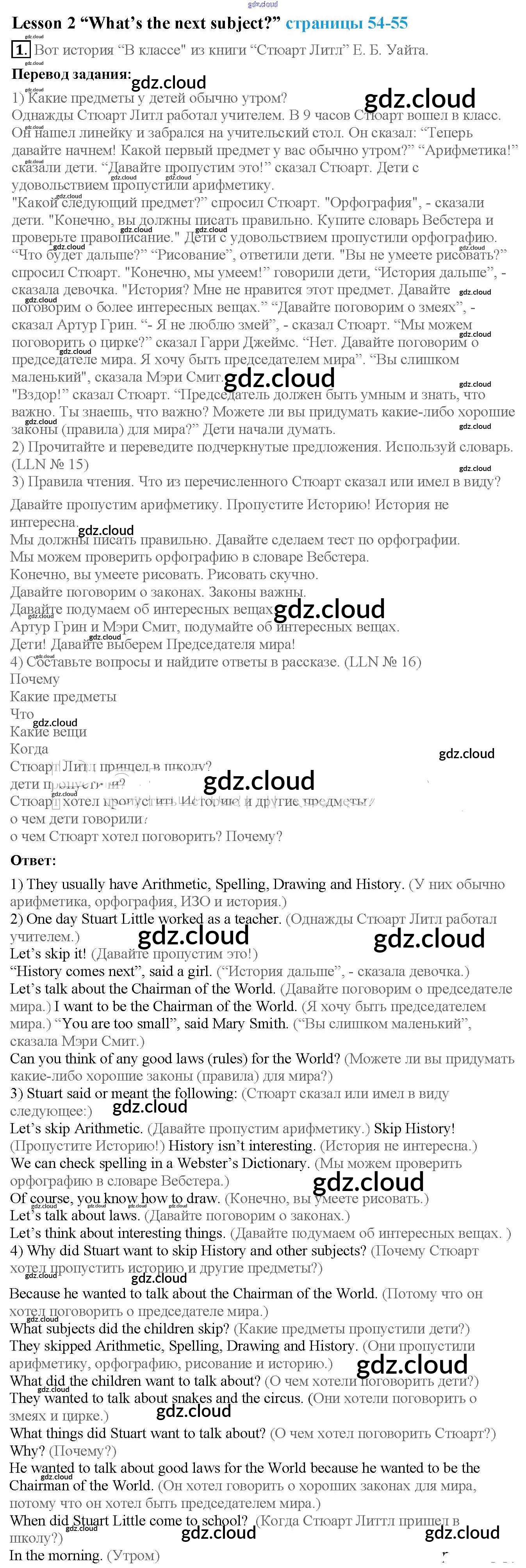 Lesson 2. "What's the next subject?" Ответы к Unit 4. I like my school! по Английскому языку 4 класс Учебник Кузовлев Часть 1, 2 Просвещение