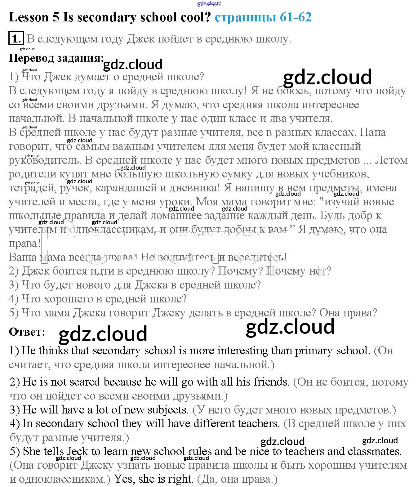 Lesson 5. Is secondary school cool? Ответы к Unit 4. I like my school! по Английскому языку 4 класс Учебник Кузовлев Часть 1, 2 Просвещение