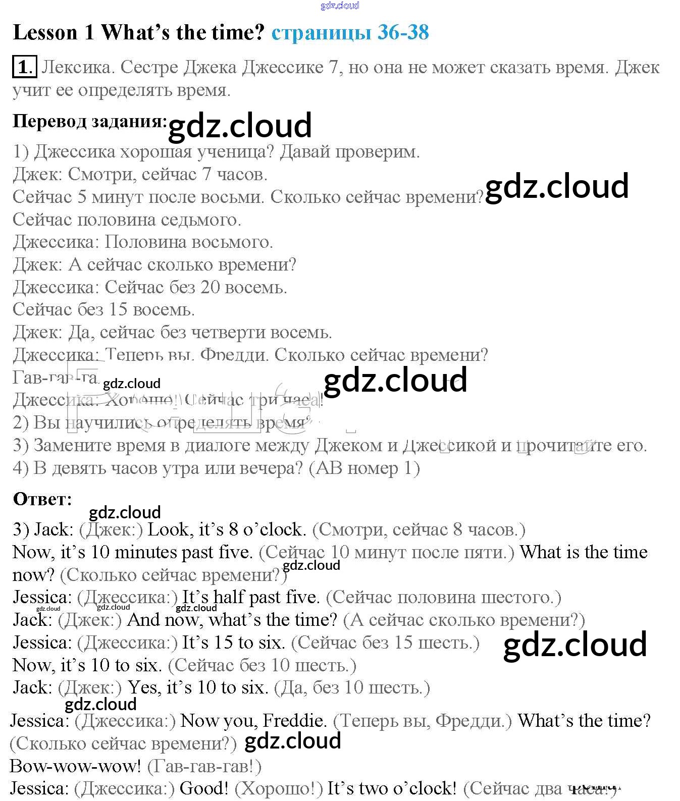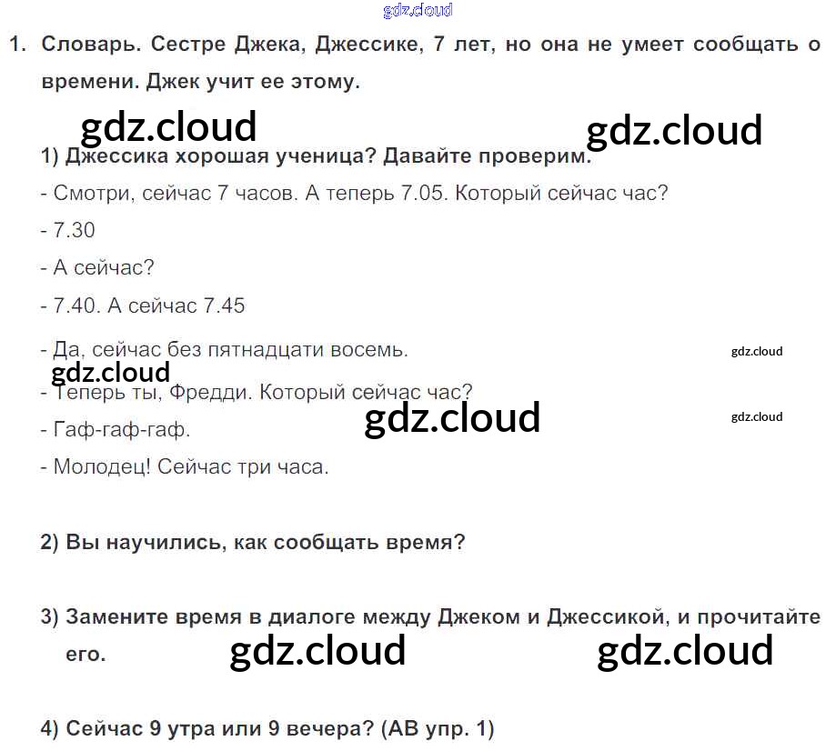 Lesson 1. What's the time? Ответы к Unit 3. It's time for me! по Английскому языку 4 класс Учебник Кузовлев Часть 1, 2 Просвещение