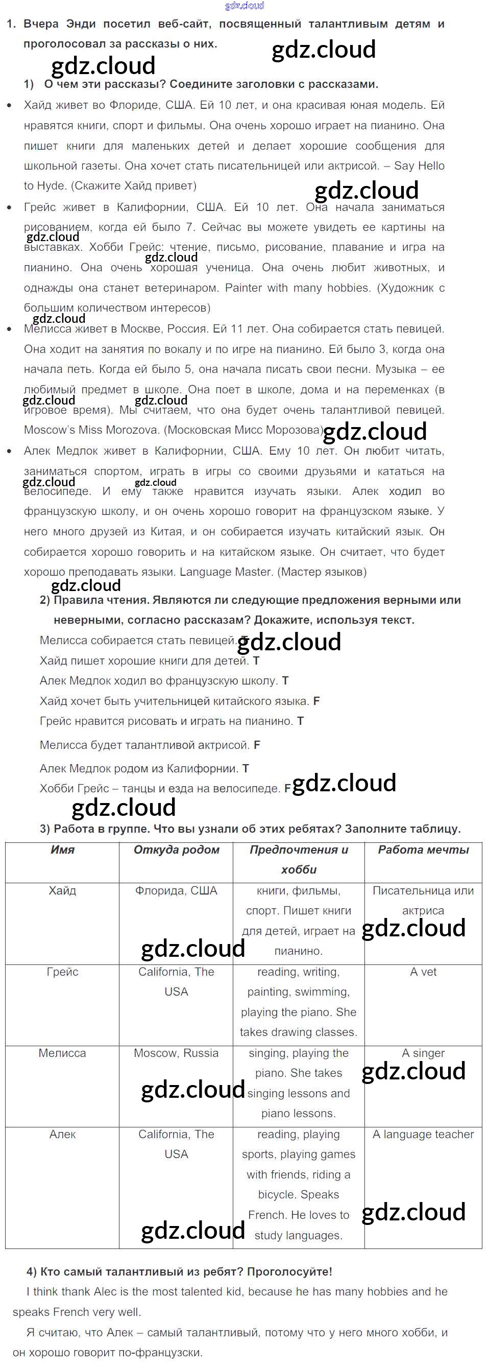 Lesson 3. Talented kids' stories Ответы к Unit 7. My dream job по Английскому языку 4 класс Учебник Кузовлев Часть 1, 2 Просвещение