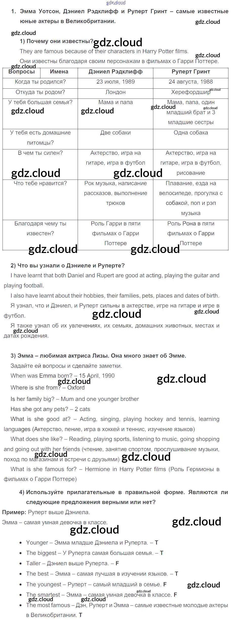 Ответ на задание 1 Учебник Английский язык за 4 (четвертый) класс Кузовлев, Перегудова, Стрельникова, Дуванова 2015 Часть 1, 2