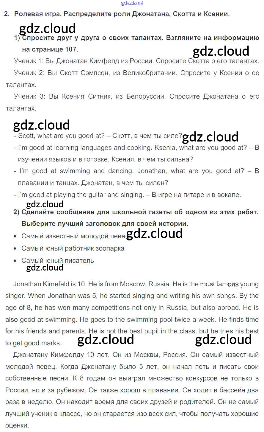 Ответ на задание 2 Учебник Английский язык за 4 (четвертый) класс Кузовлев, Перегудова, Стрельникова, Дуванова 2015 Часть 1, 2