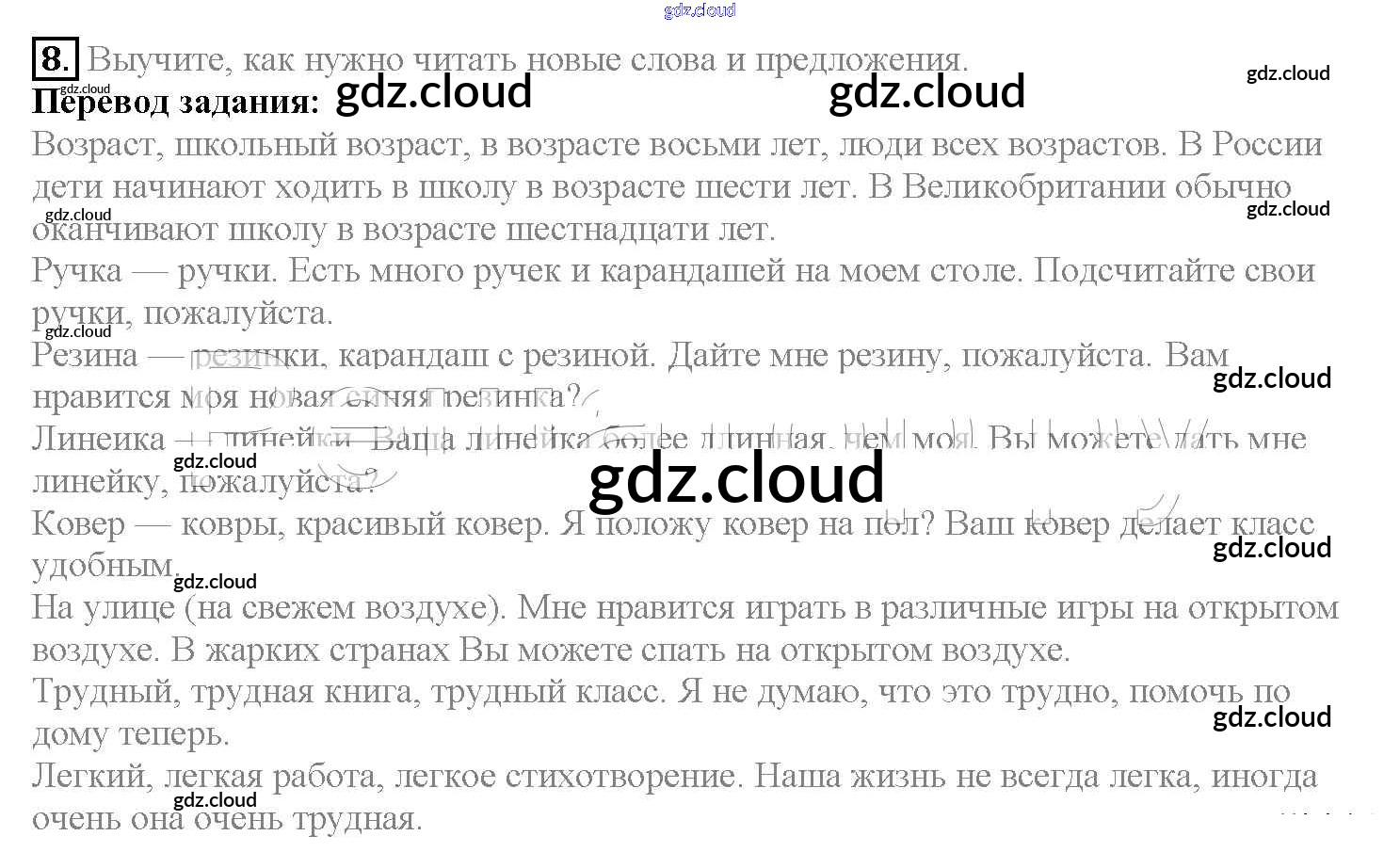 Ответ на задание 8 Учебник Английский язык за 4 (четвертый) класс Верещагина, Афанасьева Углубленный уровень 2015 Часть 1, 2
