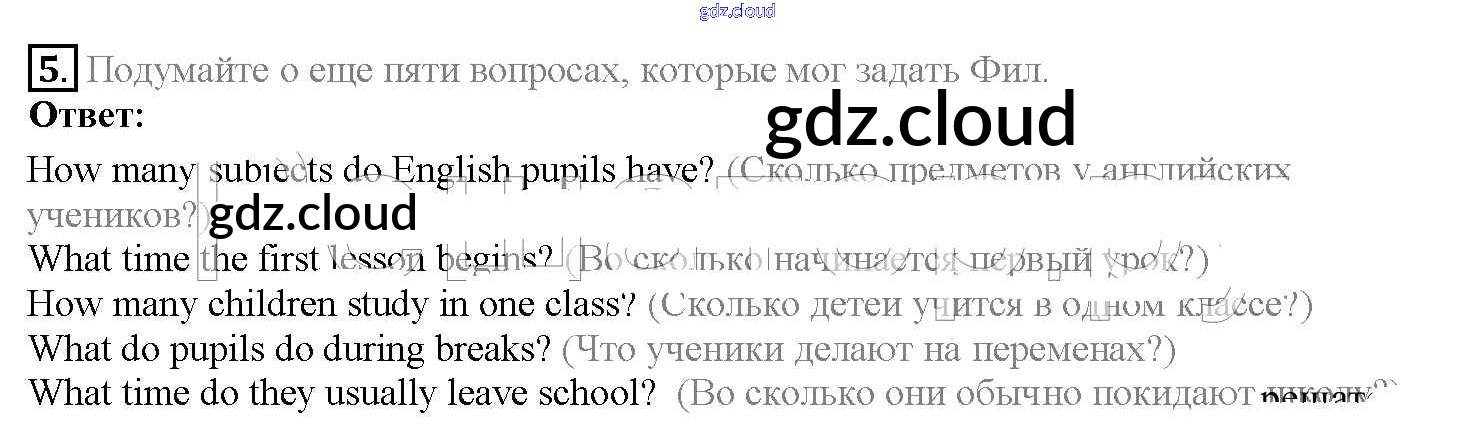 Ответ на задание 5 Учебник Английский язык  за 4 (четвертый) класс Верещагина, Афанасьева  Углубленный уровень 2015 Часть 1, 2