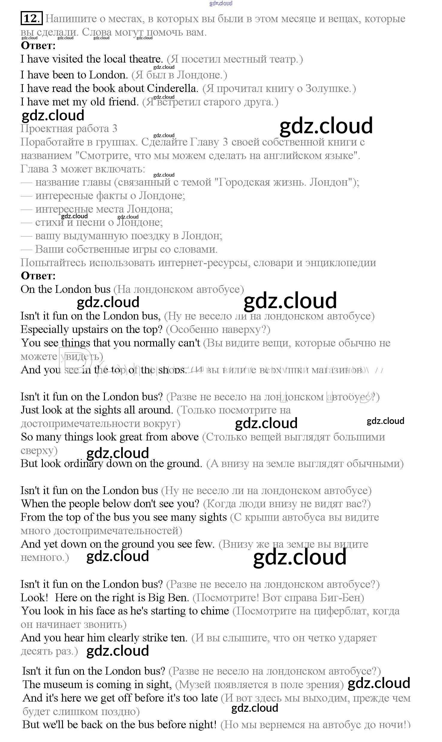 Ответ на задание 12 Учебник Английский язык за 4 (четвертый) класс Верещагина, Афанасьева Углубленный уровень 2015 Часть 1, 2
