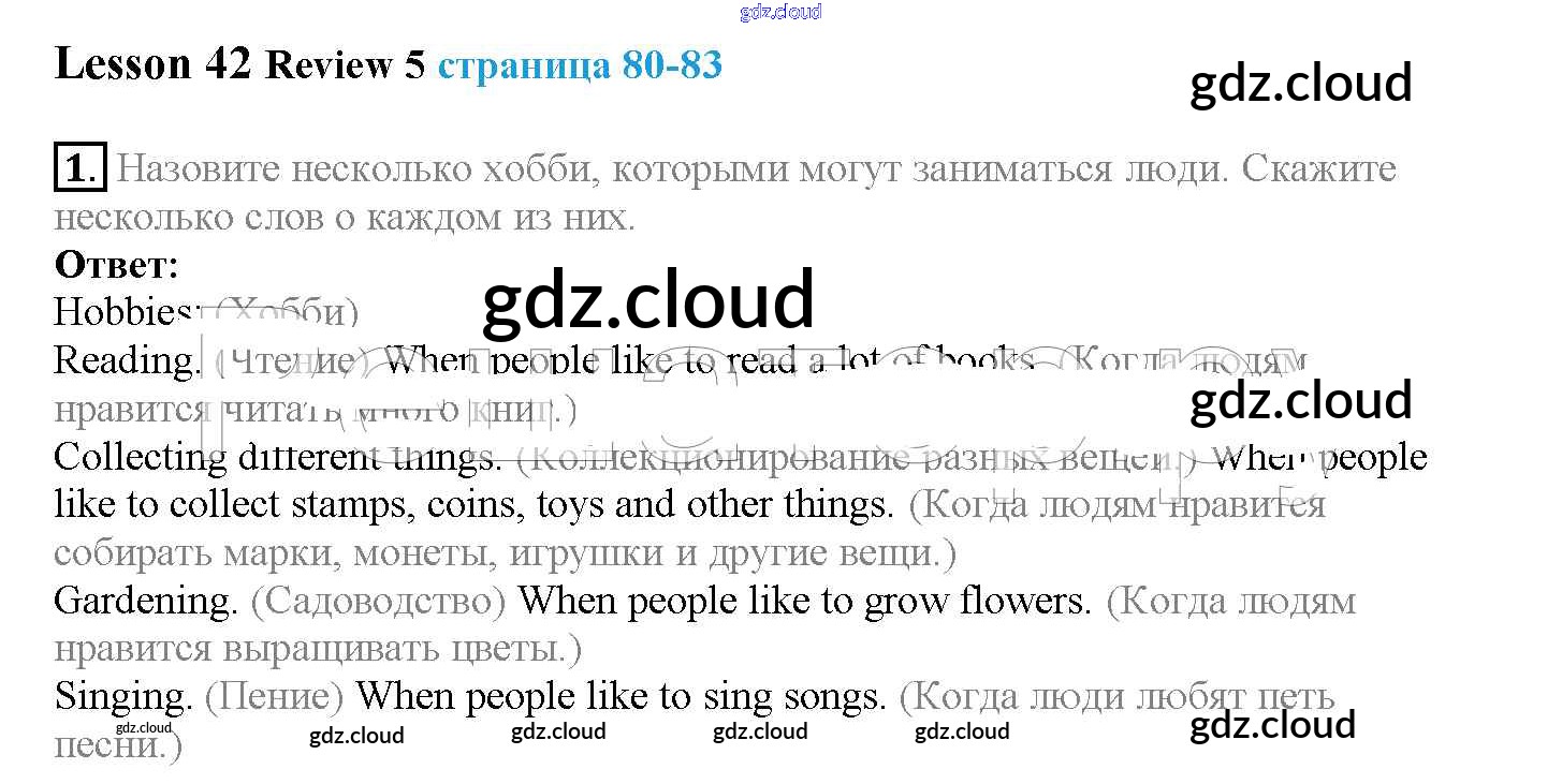 Ответы к Lesson 42. Review 5 по Английскому языку 4 класс Учебник Верещагина Углубленный уровень Часть 1, 2 Просвещение
