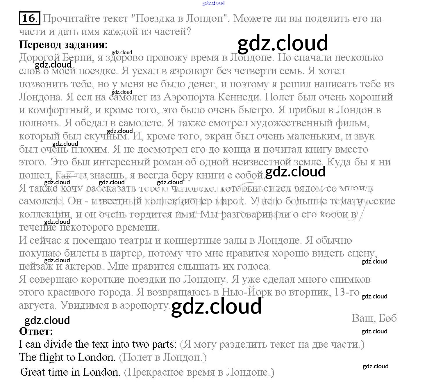 Ответ на задание 16 Учебник Английский язык за 4 (четвертый) класс Верещагина, Афанасьева Углубленный уровень 2015 Часть 1, 2
