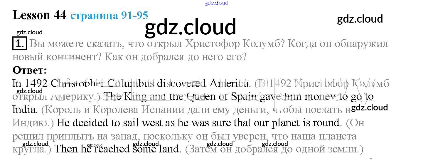 Ответы к Lesson 44 по Английскому языку 4 класс Учебник Верещагина Углубленный уровень Часть 1, 2 Просвещение