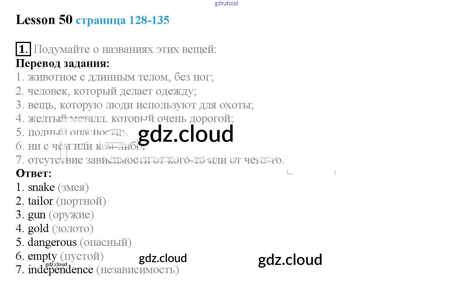 Ответы к Lesson 50 по Английскому языку 4 класс Учебник Верещагина Углубленный уровень Часть 1, 2 Просвещение
