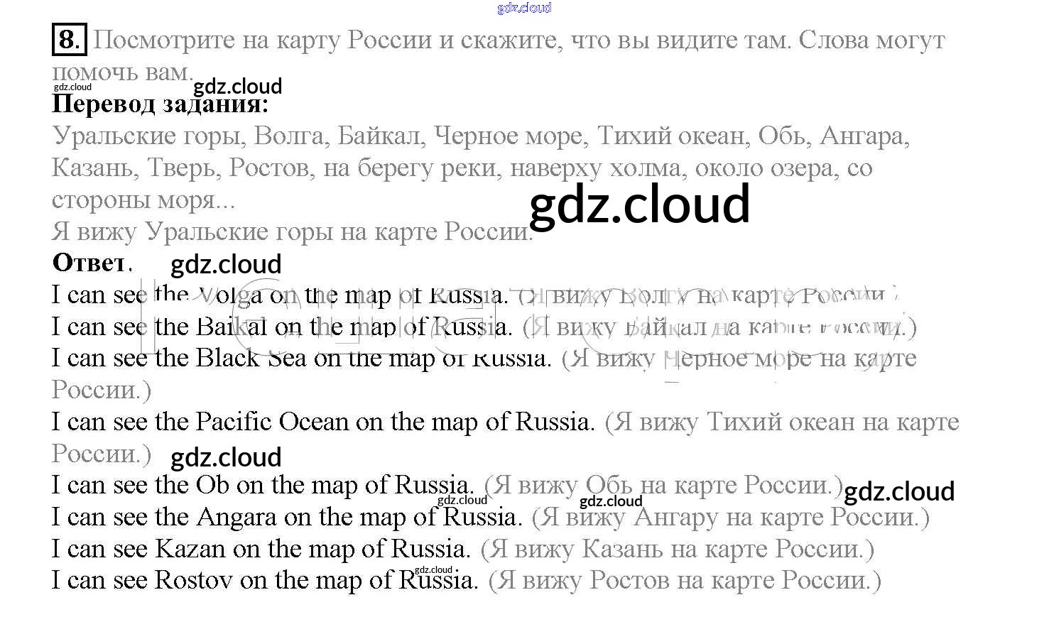 Ответ на задание 8 Учебник Английский язык за 4 (четвертый) класс Верещагина, Афанасьева Углубленный уровень 2015 Часть 1, 2