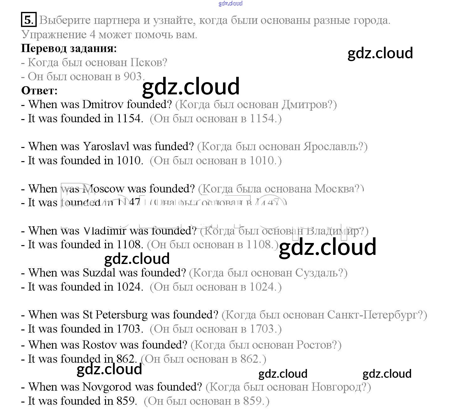 Ответ на задание 5 Учебник Английский язык за 4 (четвертый) класс Верещагина, Афанасьева Углубленный уровень 2015 Часть 1, 2