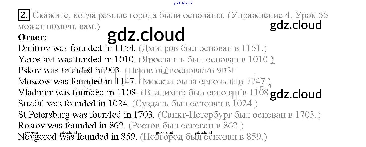 Ответ на задание 2 Учебник Английский язык за 4 (четвертый) класс Верещагина, Афанасьева Углубленный уровень 2015 Часть 1, 2