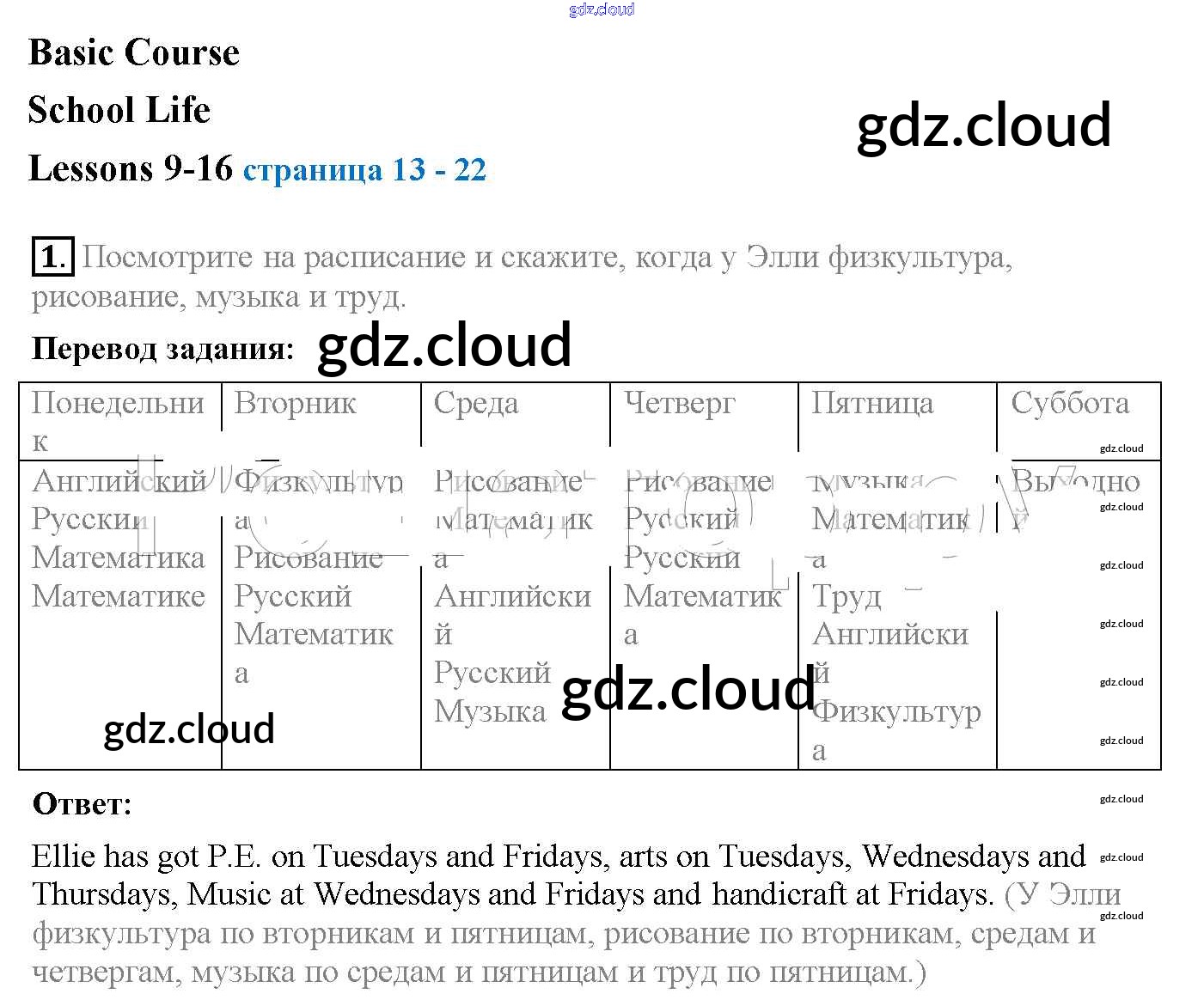 Ответы к Lesson 9-16 (Упражнения) по Английскому языку 4 класс Рабочая тетрадь Верещагина Углубленный уровень Просвещение