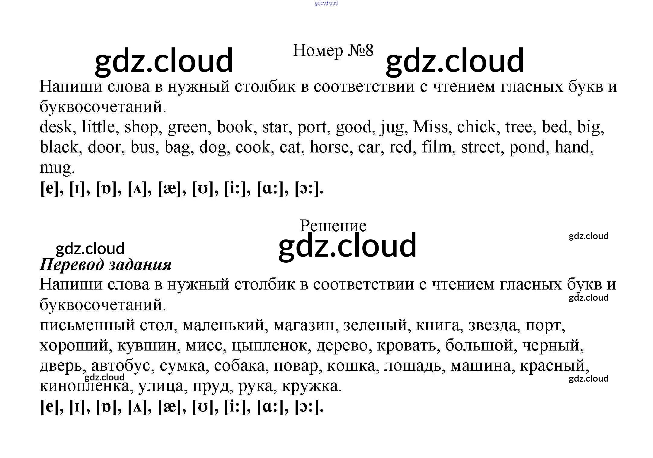 Ответ на задание 8 Учебник Английский язык за 5 (пятый) класс Афанасьева, Михеева Новый курс 2017