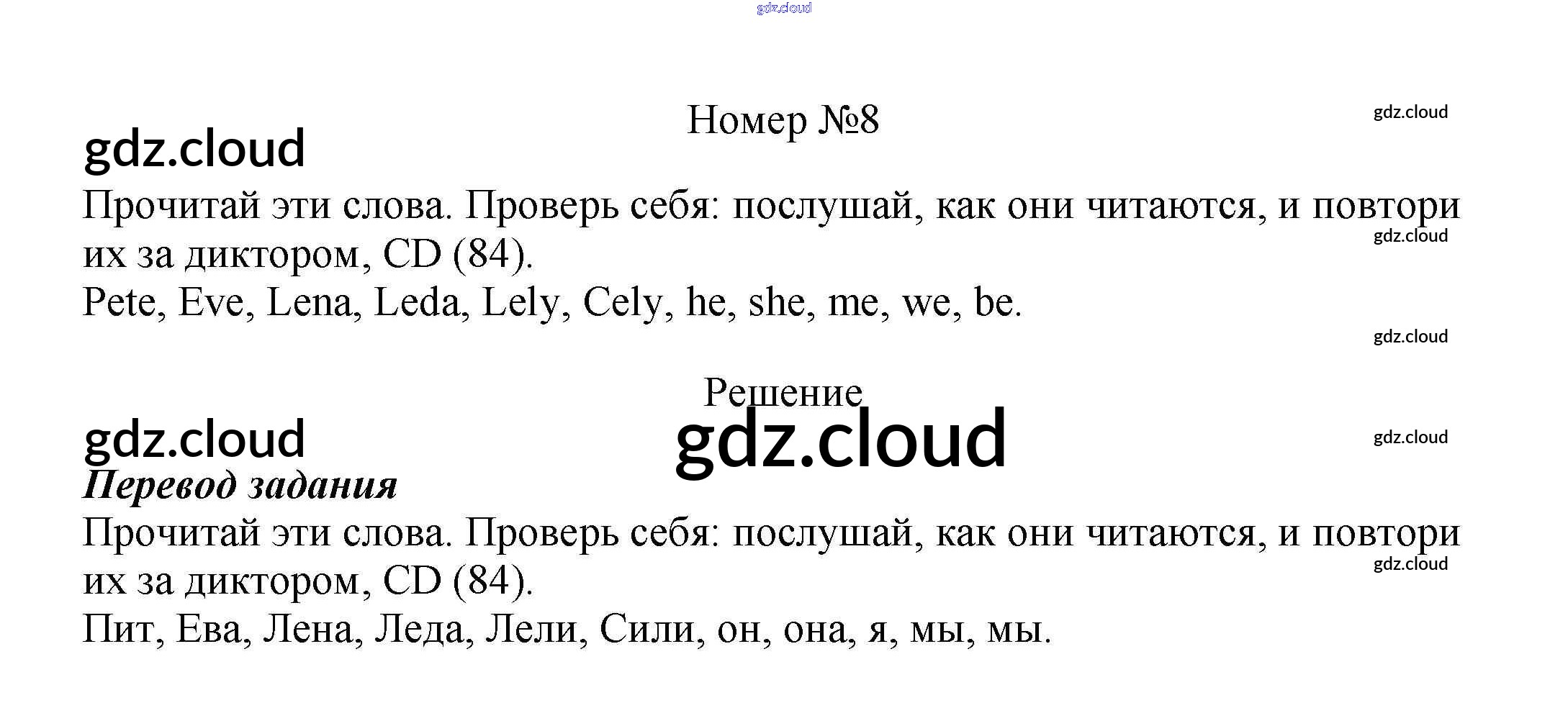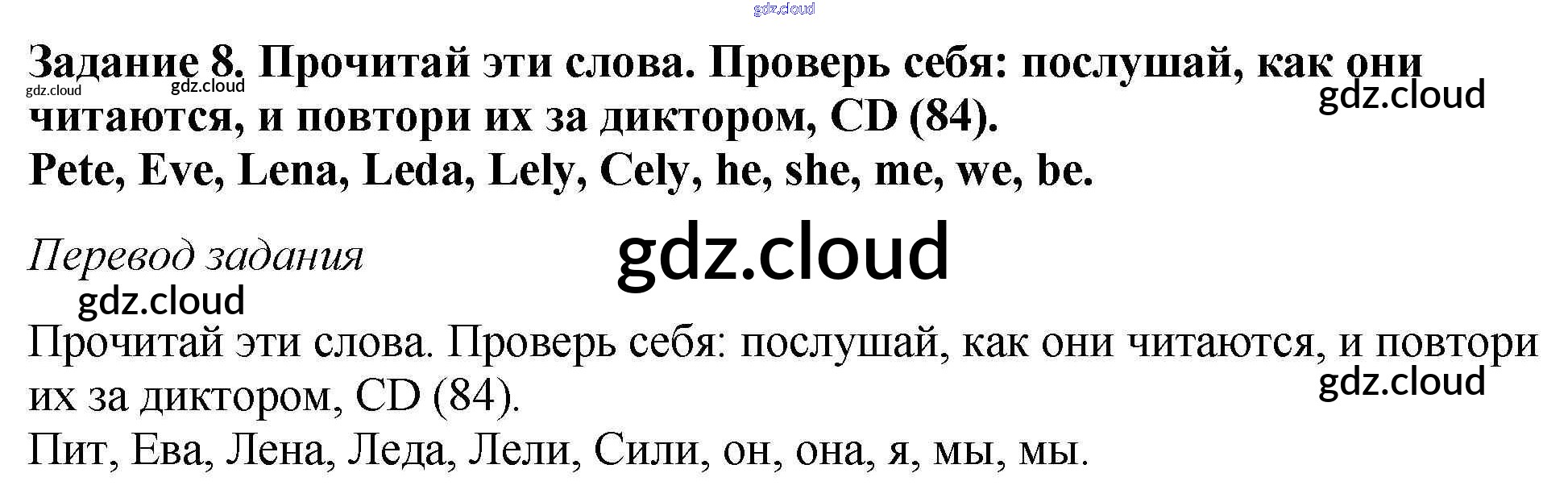 Ответ на задание 8 Учебник Английский язык за 5 (пятый) класс Афанасьева, Михеева Новый курс 2017