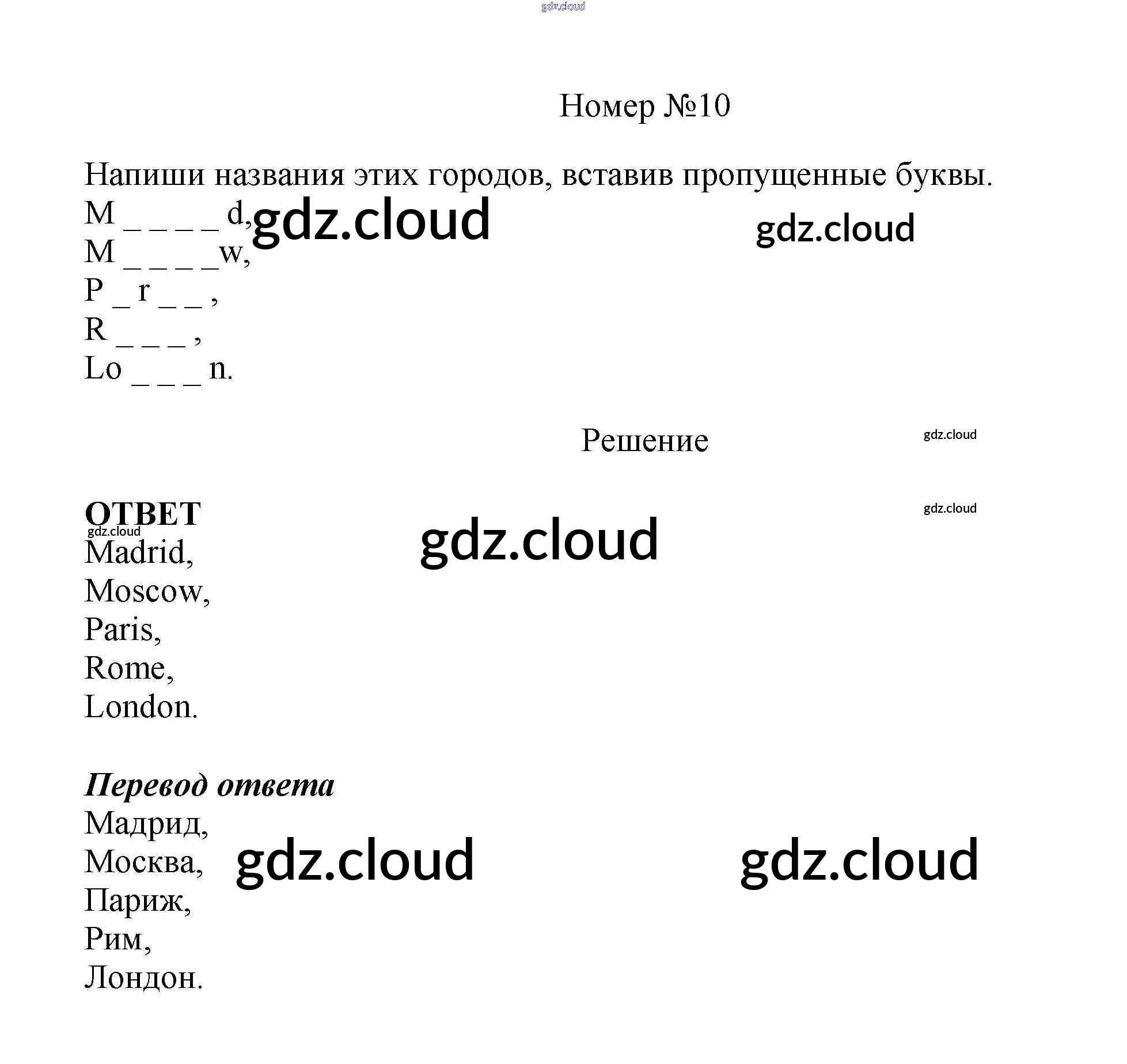Ответ на задание 10 Учебник Английский язык за 5 (пятый) класс Афанасьева, Михеева Новый курс 2017