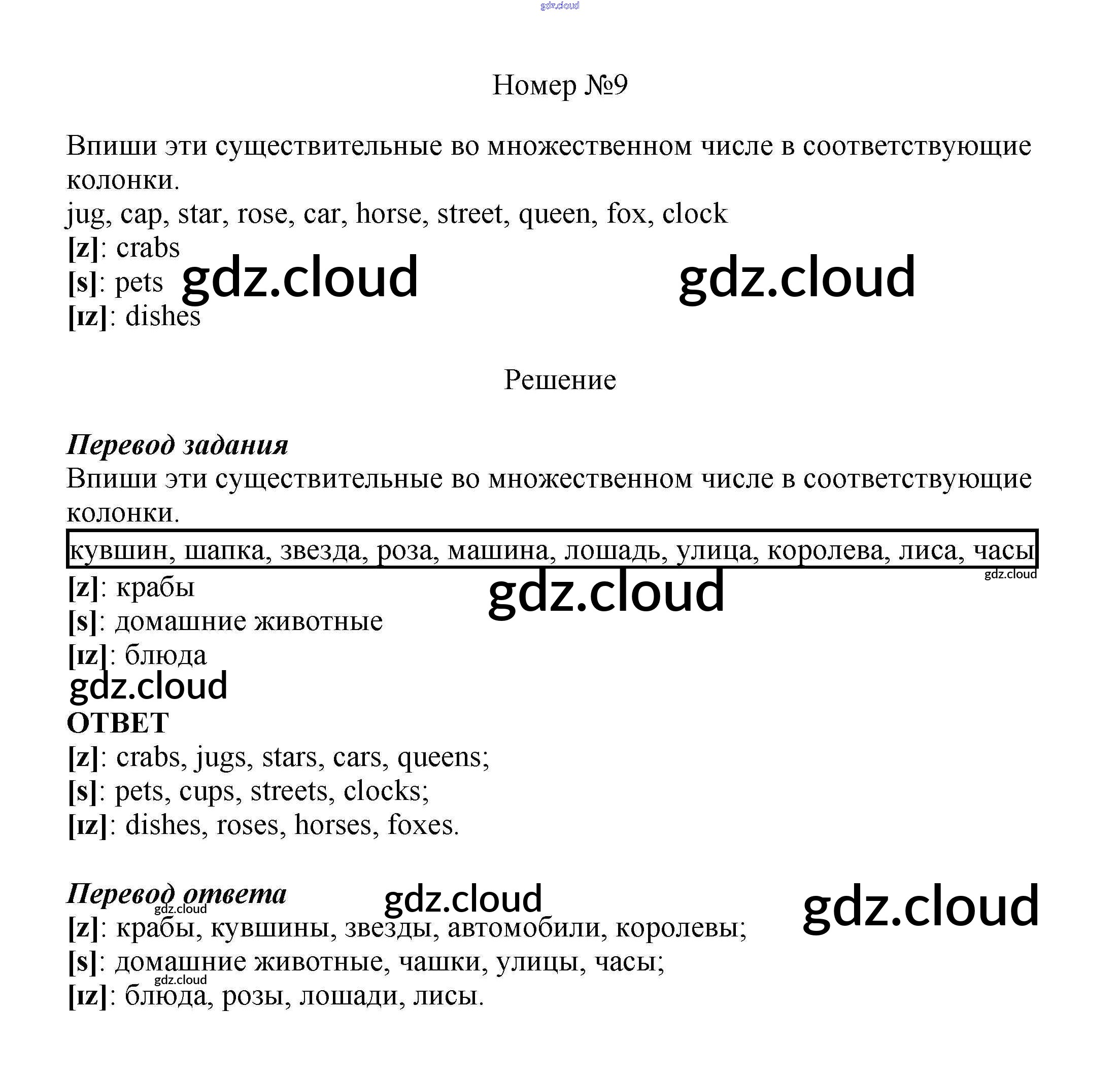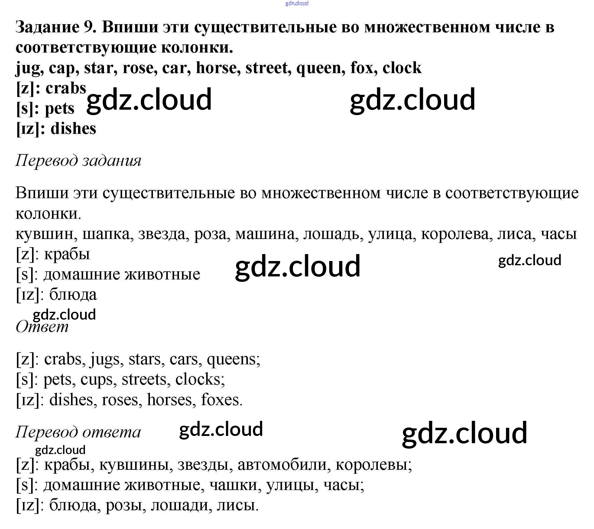 Ответ на задание 9 Учебник Английский язык за 5 (пятый) класс Афанасьева, Михеева Новый курс 2017