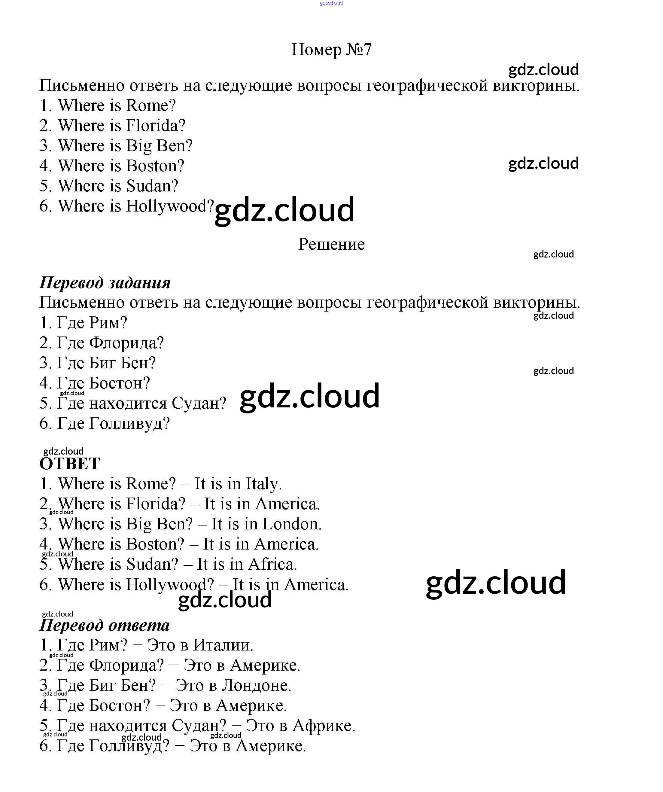 Ответ на задание 7 Учебник Английский язык за 5 (пятый) класс Афанасьева, Михеева Новый курс 2017
