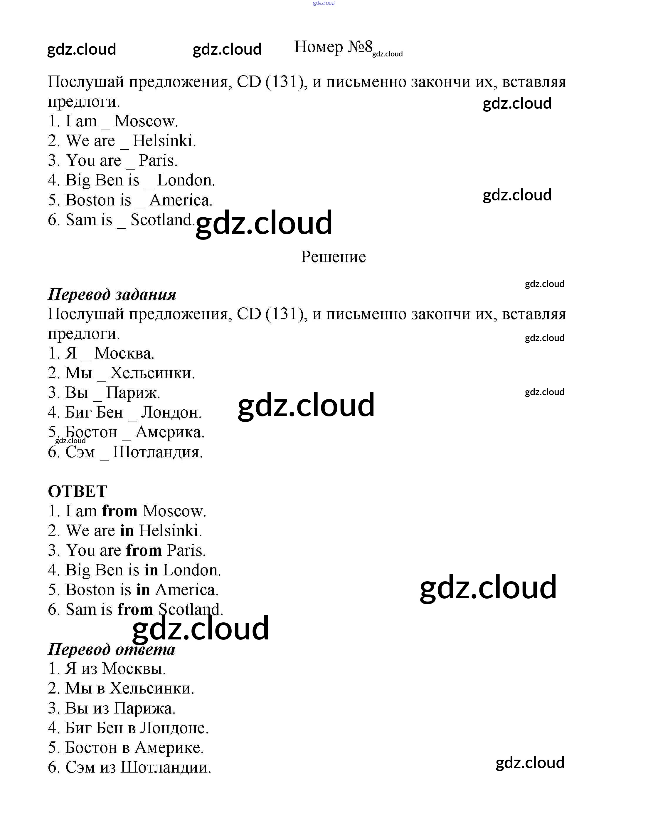 Ответ на задание 8 Учебник Английский язык за 5 (пятый) класс Афанасьева, Михеева Новый курс 2017
